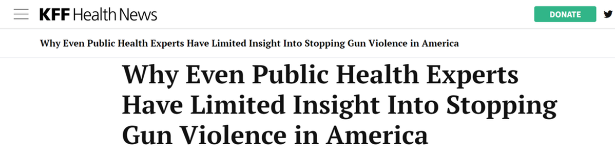 “在枪支游说团体的要求下,美国政府限制了数据收集,阻止研究人员获取大部分收集到的数据,并严格限制了用于枪支研究的资金。”海明威写道,“政策制定者基本上在盲目行事。”他还表示,“如果你没有准确可靠有用的数据,就等于一无所有”。