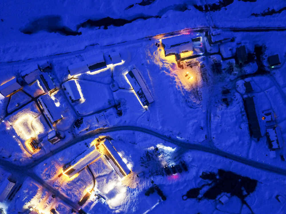 这是2024年3月8日拍摄的禾木村夜景(无人机照片)。新华社记者陈朔 摄