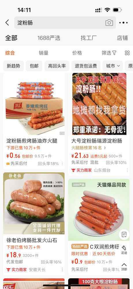 记者走访了解到,目前市场上售卖较为热门的淀粉肠品牌有芮源、夫宇、双润、双汇等,大多位于中原地区。