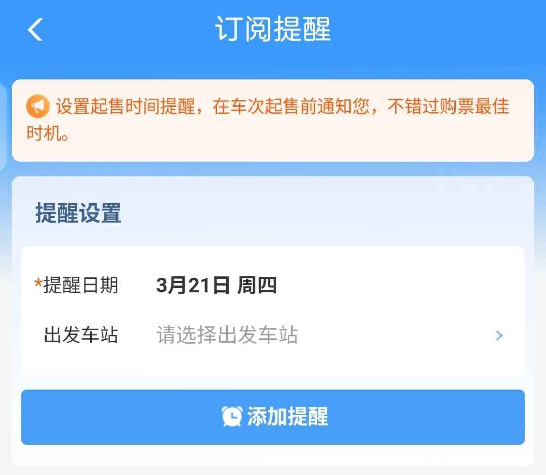 目前,铁路12306App已推出火车票起售提醒订阅和购票需求预填功能,方便旅客快速购票。