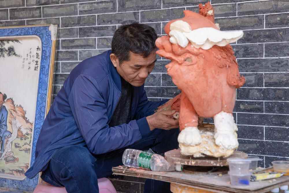 为了让繁杂的灰塑工艺步入“寻常百姓家”,邵成村在灰塑传统工艺特点中,加入更多通俗易懂的图案,创作出大型雕塑、室内外装饰、文化创意等灰塑新产品。