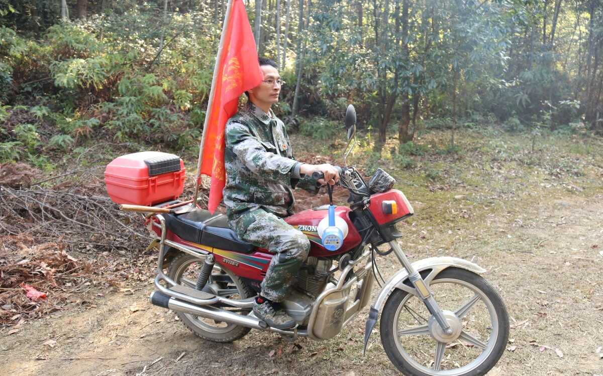 “不干则已,要干就要干好!”这些年下来,刘天娇忍受着护林工作的孤单与寂寞,一部摩托车、一把镰刀、一根长棍、一个喇叭、一本记录簿。每年走破五六双鞋,用坏几把镰刀和几十根长棍,穿烂几十件衣服都是家常便饭。节假日守路口、清明中秋守坟墓、重阳节守山顶,巡山护林、吹林区道路、清理防火林带……他早已把护林当作了生命的一部分,与森林结下了深厚的感情。