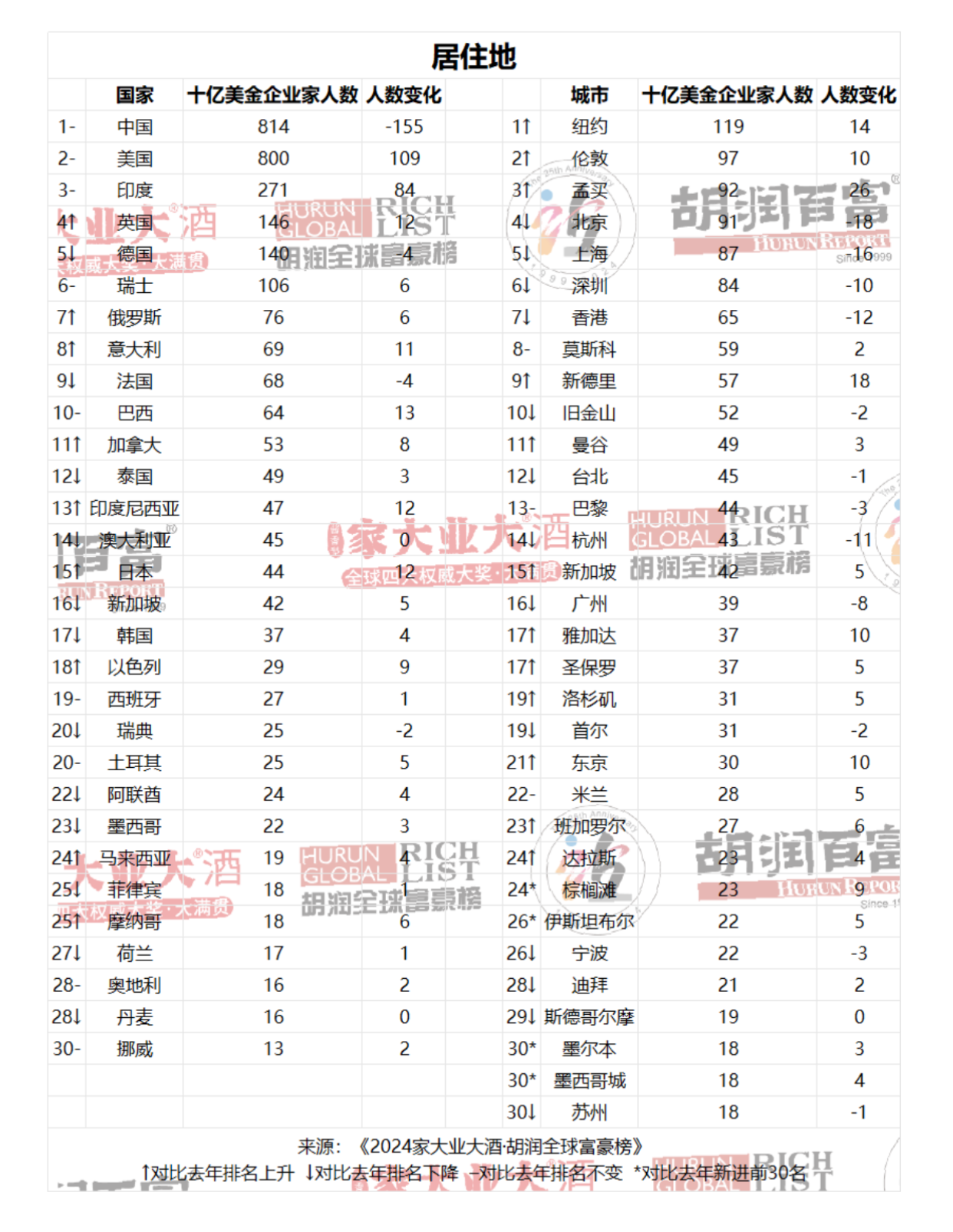 中国十亿美金企业家总财富近19万亿元人民币,比去年下降15%。241位的财富比去年增长,其中有55位是新面孔。新面孔数量居全球第三。702位的财富比去年减少,其中208位落榜。80位的财富保持不变。千亿级企业家27位,比去年减少9位。