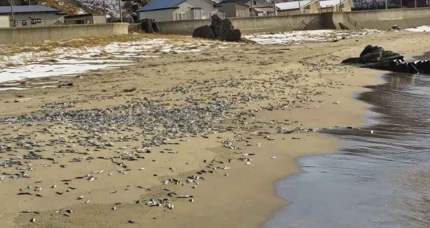 此前,据日本北海道新闻网站1月11日报道,日本北海道道南区域的濑棚町沿海地区10日再次发现大量死亡的沙丁鱼等鱼类被冲上海岸,死因尚不明确。据报道,死鱼主要集中在当地太橹渔港及附近海岸,遍布约一公里长的海岸。