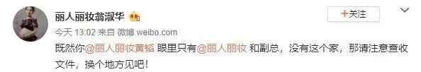当年3月11日,翁淑华再度在微博发声:“既然你丽人丽妆黄韬眼里只有丽人丽妆和副总,没有这个家,那请注意查收文件,换个地方见吧!”