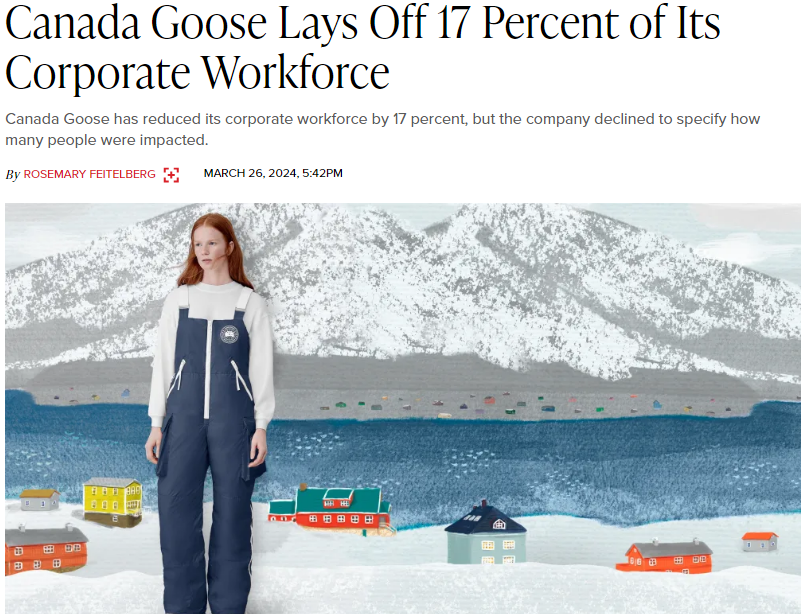 26日,加拿大鹅宣布,作为正在进行的“转型计划”的一部分,该公司将在全球范围内裁减约17%企业员工。这家总部位于多伦多的公司没有具体说明受影响的员工总数。