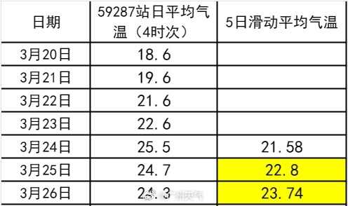 按照气候统计方式,将一个地方连续5日的日平均气温相加,并把相加结果除以5,即可获得“5日滑动平均气温”这一参考季节变化的数据。根据广州市气象部门监测,3月25日和26日,广州国家基本气象站录得5日滑动平均气温分别为22.8℃和23.74℃,5日滑动平均气温已连续两天超过22℃。按照气候季节划分标准(GB/T 42074-2022),连续五天的5日滑动平均气温≥22℃,广州将满足在气候上被认定为进入夏季的标准。