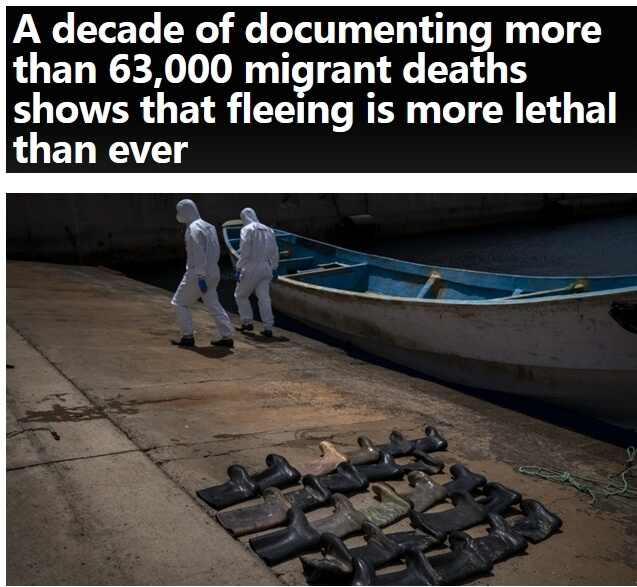 根据报告,近60%死者为溺水死亡;取道地中海前往欧洲中途遇难的人数最多,超过2.8万;此外,还有数以千计的人死于其他路线,例如大西洋海域、墨西哥与美国边境地区等。