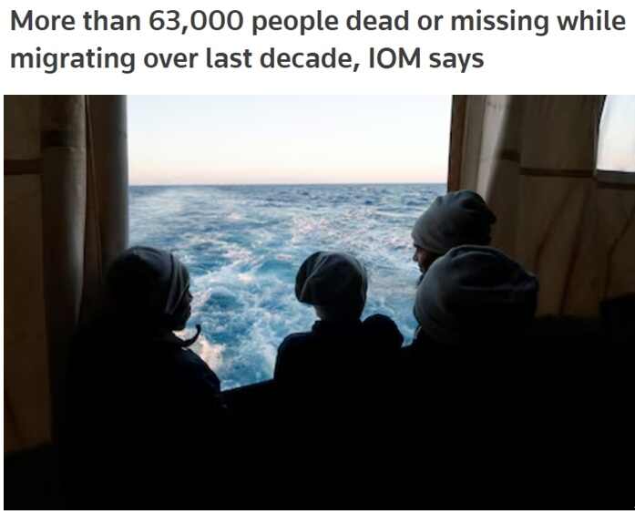 当地时间26日,国际移民组织发布的一份最新报告显示,过去十年内,该组织记录到超过6.3万名移民在通过非正规渠道移民途中死亡或失踪。