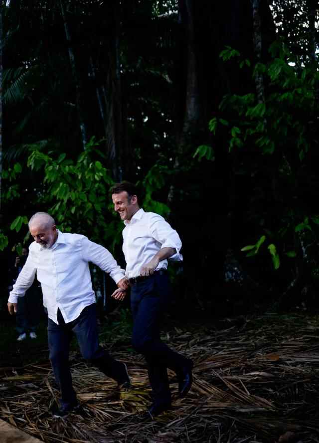 据悉,马克龙26日开始对巴西进行为期3天的访问。在参观亚马孙森林时,马克龙和卢拉的手牵手合影,还进行了友好拥抱,两人的笑容和热情的肢体动作显示出双方的亲密关系。
