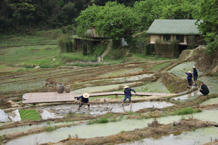 当天下午,有关领导和嘉宾在畿·云瑶总经理陈培才带领下来到梯田,插下第一根秧苗,正式宣告了山野春耕季的到来,在不久的将来,广大市民朋友们便可欣赏到壮观的梯田稻浪景观。