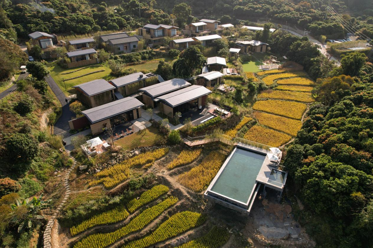畿·云瑶精品文旅酒店位于从化区温泉镇龙新村瑶山社,该项目是从化乡村振兴及文旅创新发展的探索试点之一。这里青山幽谷,梯田延绵,湖水澄清,一幢幢青瓦夯土村舍散落在密林草地之间,显得祥和而宁静,让人仿佛置身世外桃源。