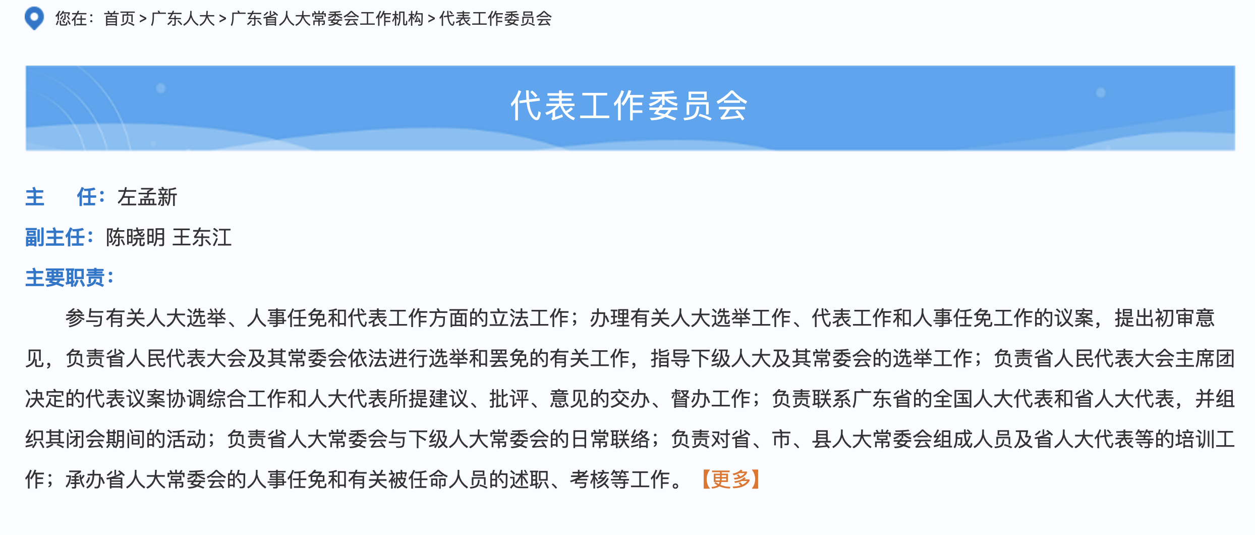 记者发现,目前广东人大官网的“广东省人大常委会工作机构”一栏已经“上新”,广东省人大常委会代表工作委员会正式“亮相”。