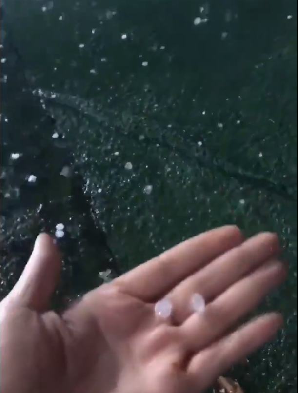 不仅大雨倾盆,广州部分地区还出现冰雹,番禺区3月29日19:07发布冰雹橙色预警。