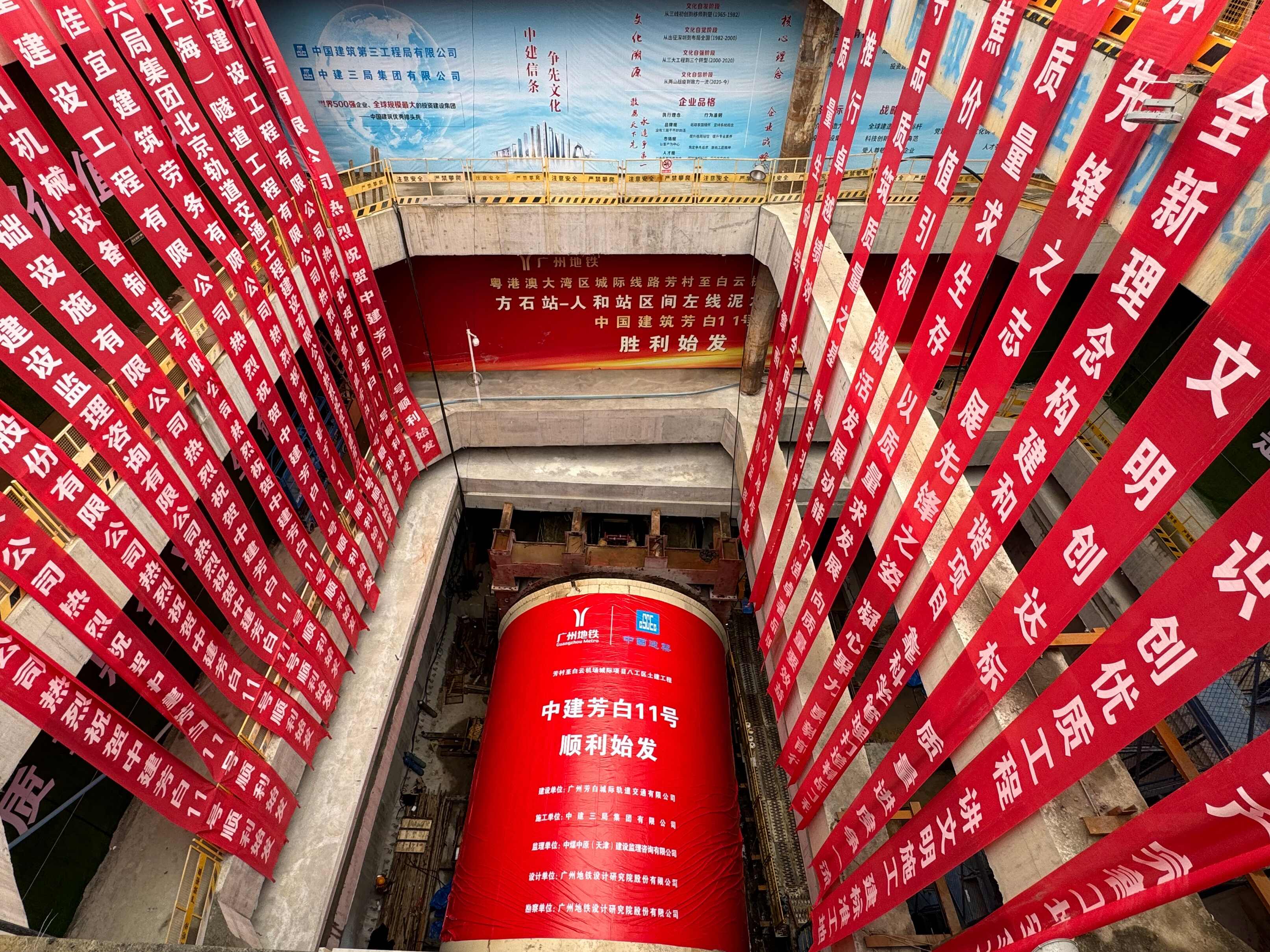 3月30日,芳村至白云机场城际铁路(以下简称“芳白城际”)方石站至人和站区间(“方人区间”)左线盾构“中建芳白11号”顺利始发,标志着该区间进入盾构施工阶段。
