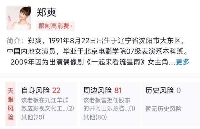 公开资料显示,2021年,郑爽代孕事件被揭发,国家广播电视总局主管重点刊物《广电时评》针对此事件表示,“不会为丑闻劣迹者提供发声露脸的机会和平台”。同年,她还因涉嫌签订“阴阳合同”、拆分收入获取“天价片酬”、偷税、漏税、逃税等问题被上海市税务局第一稽查局调查。