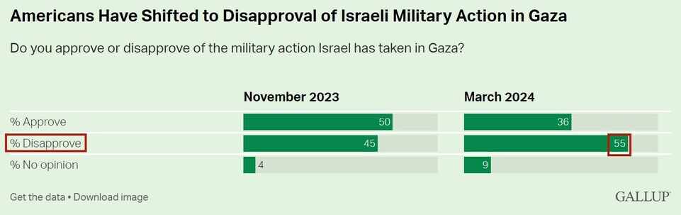 咨询机构盖洛普3月27日发布的一项民调结果显示,约有55%的美国人不赞成以色列继续进攻被围困的加沙地带。