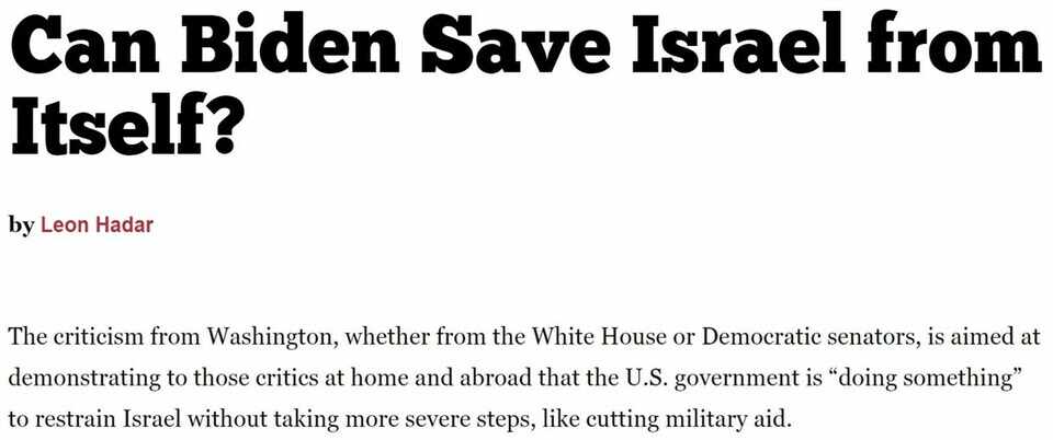 美国外交政策研究所资深研究员莱昂·哈达发表文章指出,美国对以色列的批评无论是来自白宫还是国会,都是为了向国内外证明美国“的确做了一些事情”来约束以色列。但美国不会采取更严厉的措施,比如削减对以色列的军事援助。
