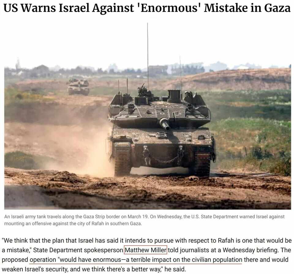 △美国《新闻周刊》:美国务院发言人米勒3月27日称,如果以军进攻拉法,将对平民造成可怕影响。