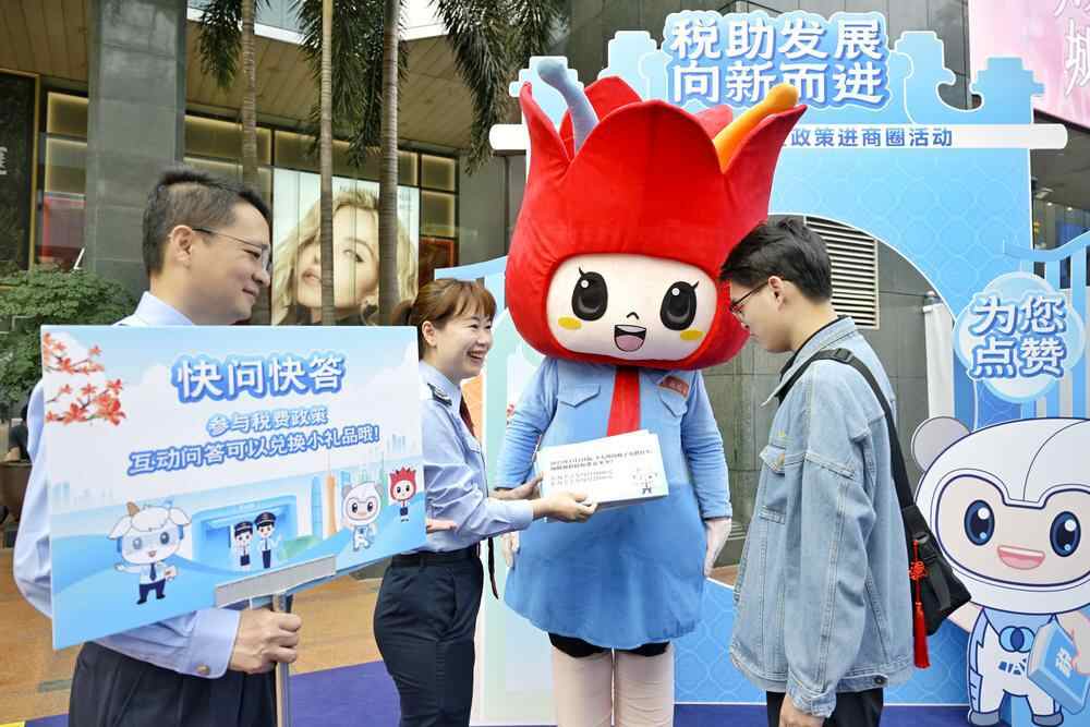 为开展好第33个全国税收宣传月活动,讲好广州税务故事,扩大宣传覆盖面和参与度,传播税收正能量,天河区税务局紧扣税收宣传月“税助发展 向新而进”主题,结合便民办税春风行动,组织此次主题宣传活动。广州市税务局的形象代言人——“穗悦棉畅宝”税务家族在现场积极互动,吸引了市民群众前来参加活动赢取奖品,了解最新的税惠政策和便民服务举措。活动包括“趣税问答擂台赛”“快问快答互动游”“税入心甜随身行”“主播在线云打卡”等环节,吸引不少市民参与。