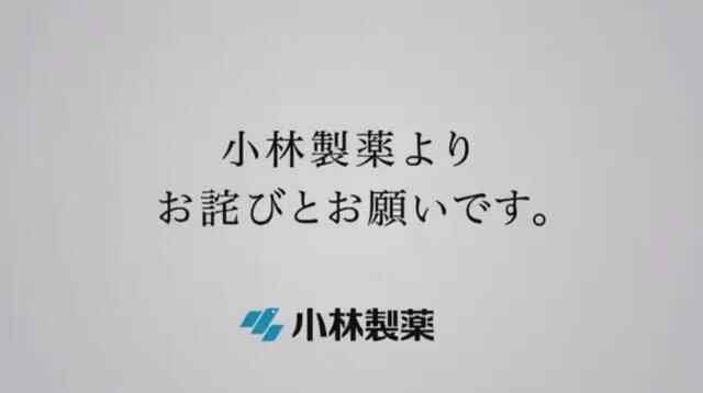 广告中播音员语调沉重,在白色背景、黑色文字的字幕中,小林制药首先对消费者致歉,并呼吁消费者不要服用已购买的相关商品,还请求消费者协助回收。
