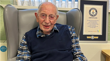 吉尼斯世界纪录机构当地时间4月5日认定现年111岁的英国老翁约翰·艾尔弗雷德·廷尼斯伍德为全球在世最长寿男性。