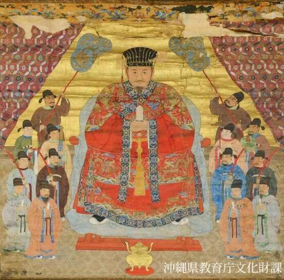 22件艺术品包括琉球国王肖像画“御后绘”,是代表琉球王国的文化遗产之一。其中,第13代“尚敬王”的“御后绘”横竖皆超过150厘米,国王红色的衣服和金色的背景色彩仍然鲜艳。