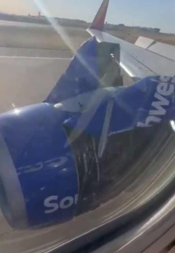 当地时间7日,美国西南航空公司一架从科罗拉多州丹佛飞往得克萨斯州休斯敦的波音737-800型客机在起飞过程中,发动机罩发生脱落。