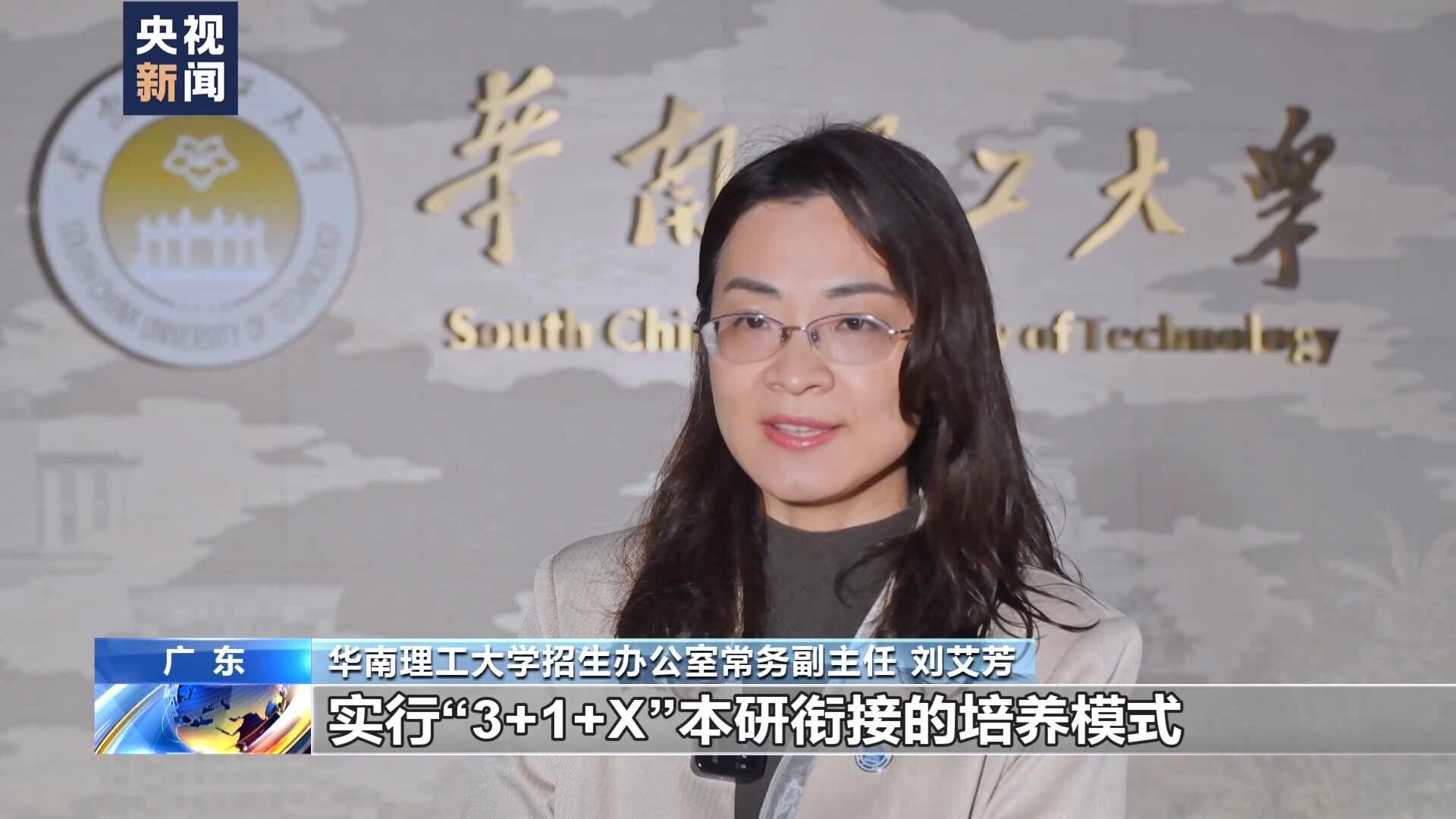 华南理工大学招生办公室常务副主任 刘艾芳:我们学校强基计划的学生,实行“3+1+X”本研衔接的培养模式。前三年主要是本科学习,第四年可以提前进行研究生课程学习。X主要是指从第五年开始,学生去攻读硕士或博士学位。学生可以在基础学科专业进行培养,也可根据培养方案,在高端芯片与软件智能科技、新材料等关键领域,以及国家人才紧缺的人文社科领域,进行学科交叉培养。
