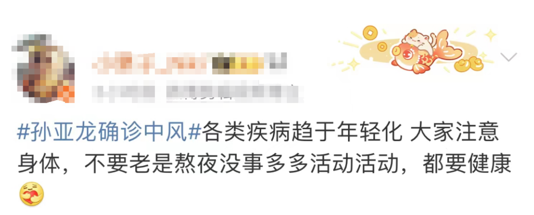 4月6日,孙亚龙曾发微博表示双眼看东西重影、舌头左脸发麻,第一次遇到这样的情况,还进了医院抢救室。