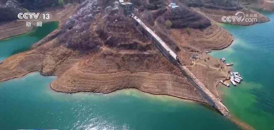 您现在看到的是位于河北省宽城满族自治县境内的潘家口水库“水下长城”。长城内外,漫山遍野的山杏花悄然绽放,在春风中争芳斗艳,时而飘来阵阵花香。春日里,盛开的杏花、碧绿的湖水与巍峨的长城交相辉映,形成了刚柔之美的完美融合,构成一幅绝美的画卷,吸引了众多游客登上长城前来赏花踏青。