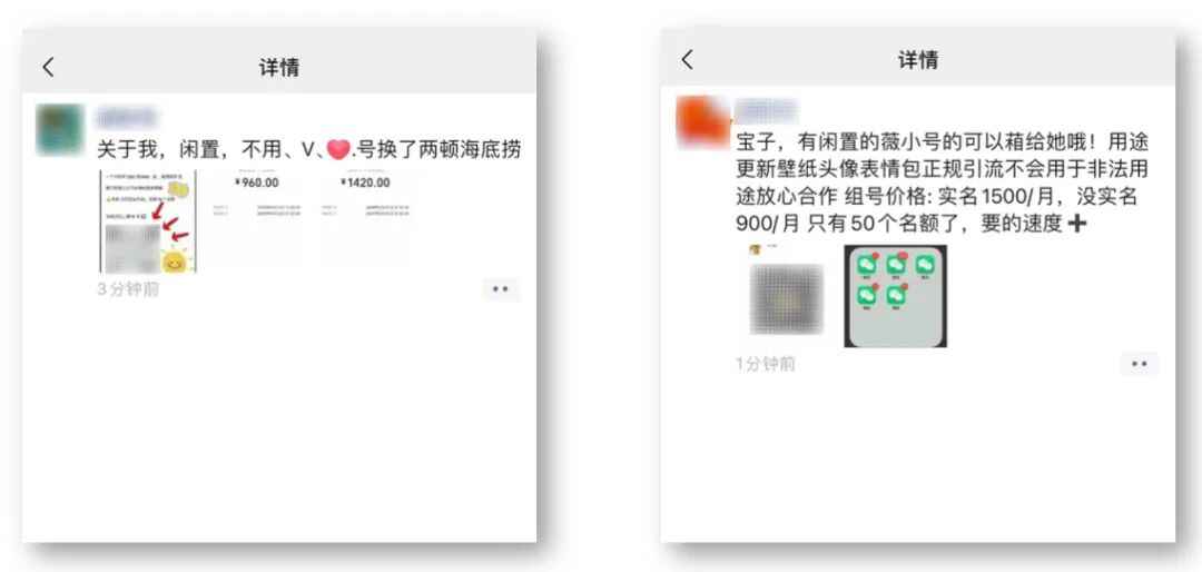 网络“黑灰产”通过租赁、购买等方式获得正常的微信用户账号,进而利用账号实施违法犯罪行为、逃避监管。对于在平台中租售微信账号的行为,微信团队一直严打严防,避免用户落入圈套,成为不法分子违法犯罪的“帮凶”。