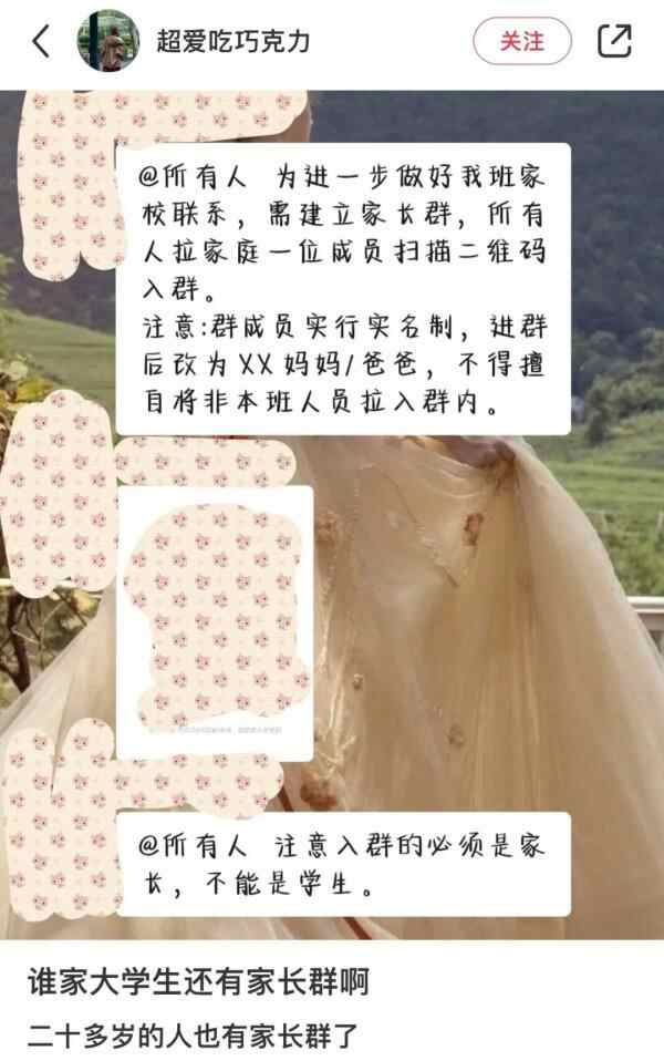 2023年12月,湖南一所重点高校大一学生许燃的班级群弹出消息:为方便宣传各项事务,学院现建立家长群,请学生通知家长添加辅导员微信。