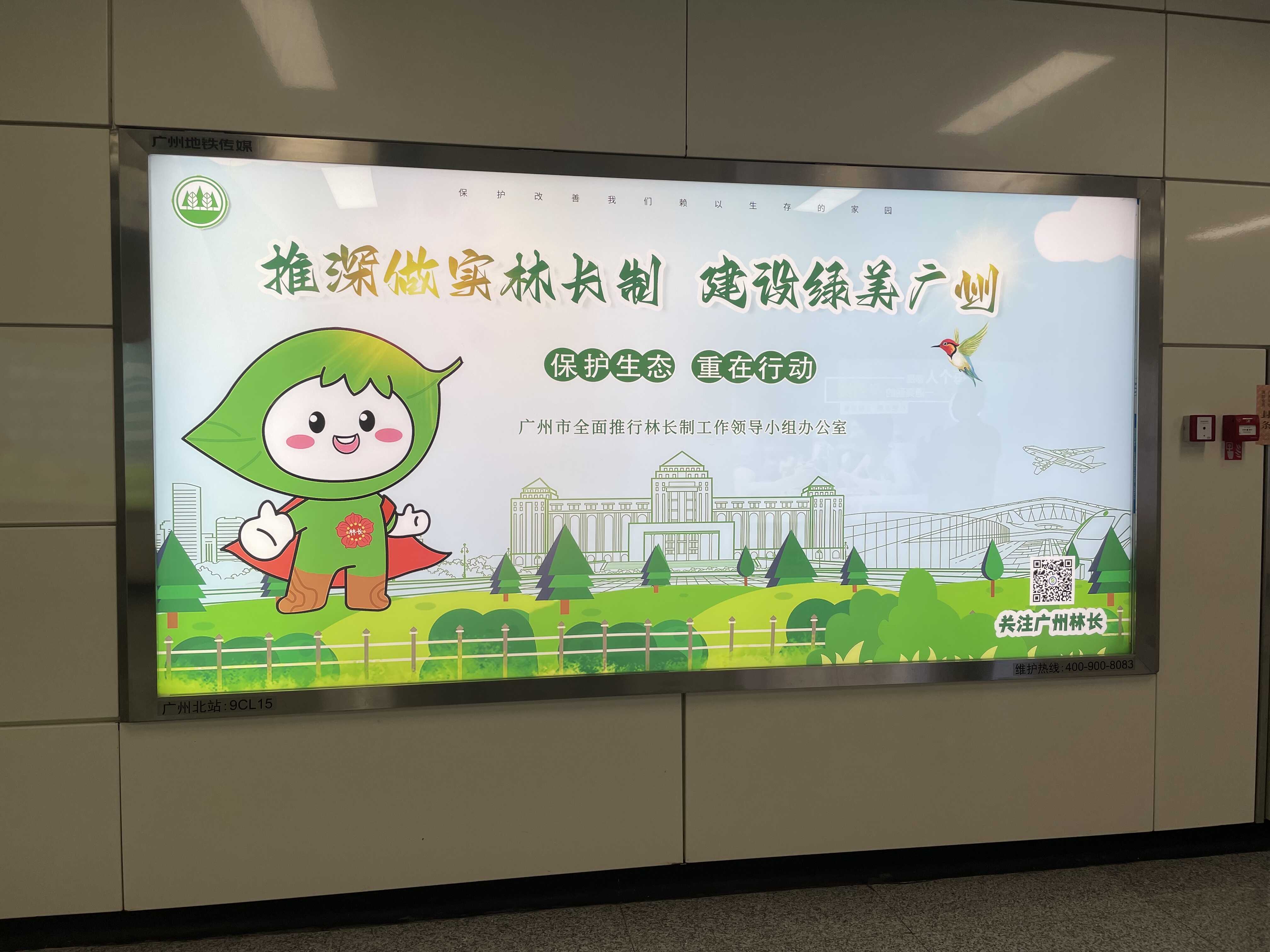 近日,由广州林长办、广州林业和园林局推出的林长制地铁灯箱公益广告在广州市50个地铁站正式亮灯,向广大市民朋友宣传广州林长制和绿美广州生态建设的工作成果,进一步提高公众对林长制的知晓度、支持度和参与度。