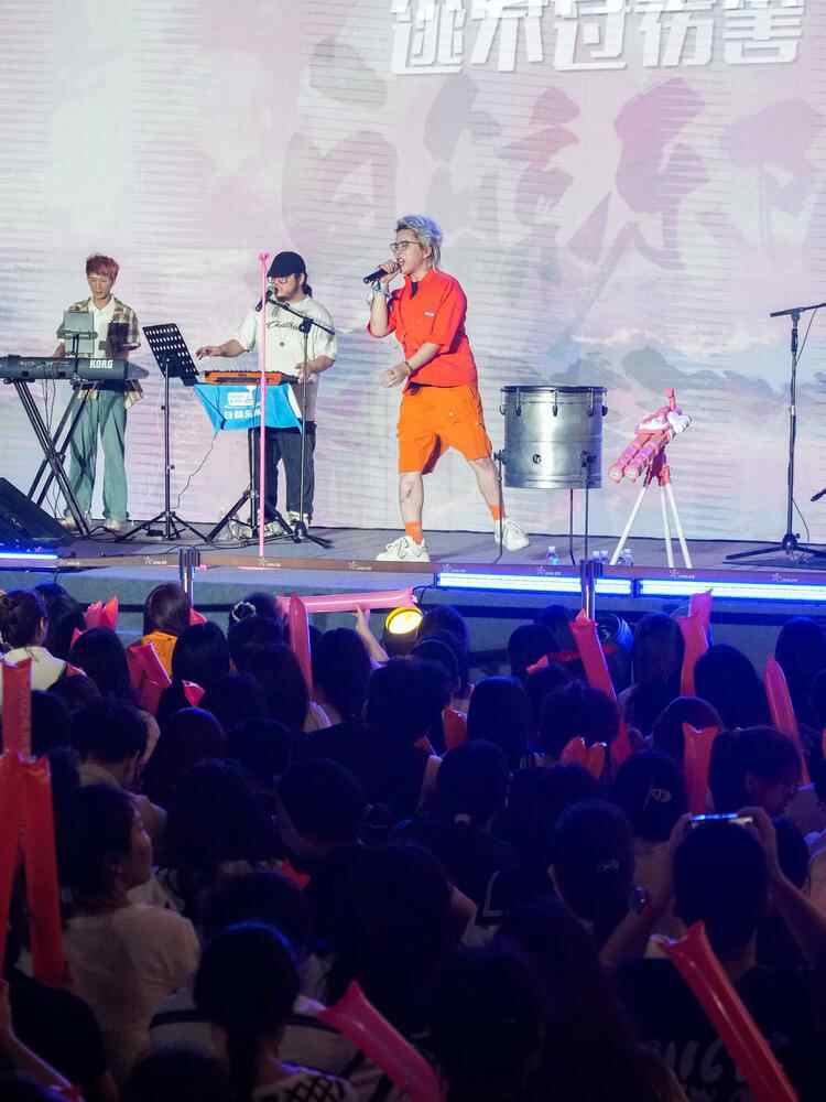 白鲸Whale King,2020年诞生于广州街头,是一支风格多样的新生代独立乐队。音乐会以《纵浪》《幻鲸》两首原创开场,观众仿佛化身鲸鱼尽情遨游大海。原创歌曲《想去吹风》《快点下班》,记录着人间烟火,讲述细碎平凡生活中点滴打动人心的温暖,现场时而动人心弦,时而温馨满满,最受欢迎的现场点歌和全场大合唱点燃全场。