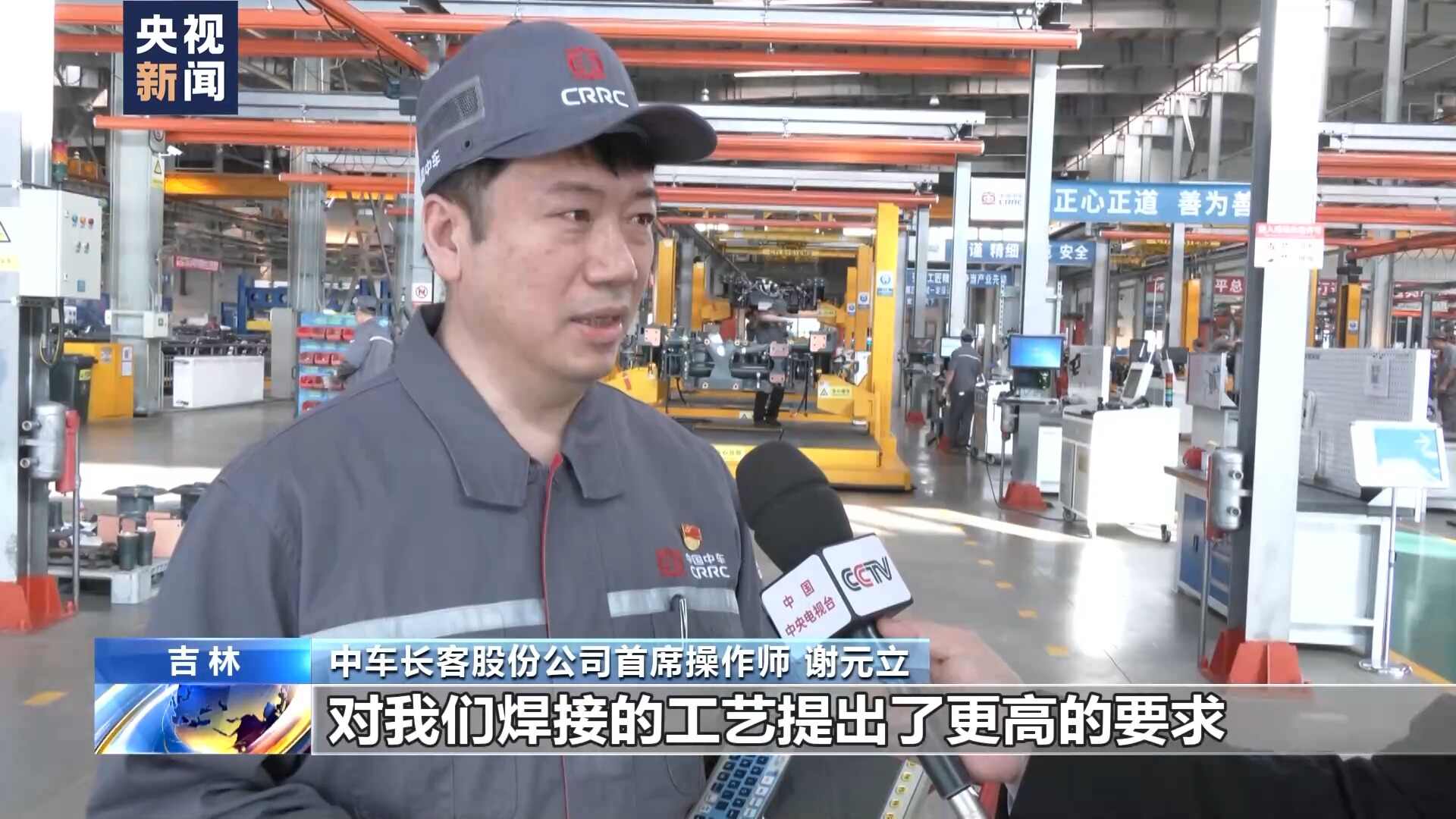 中车长客股份公司首席操作师 谢元立:速度等级的提升,对我们的焊接工艺提出了更高的要求。机械手焊接完全按照程序编辑的行走路径,避免了人为因素的干扰,可以达到无缺陷。