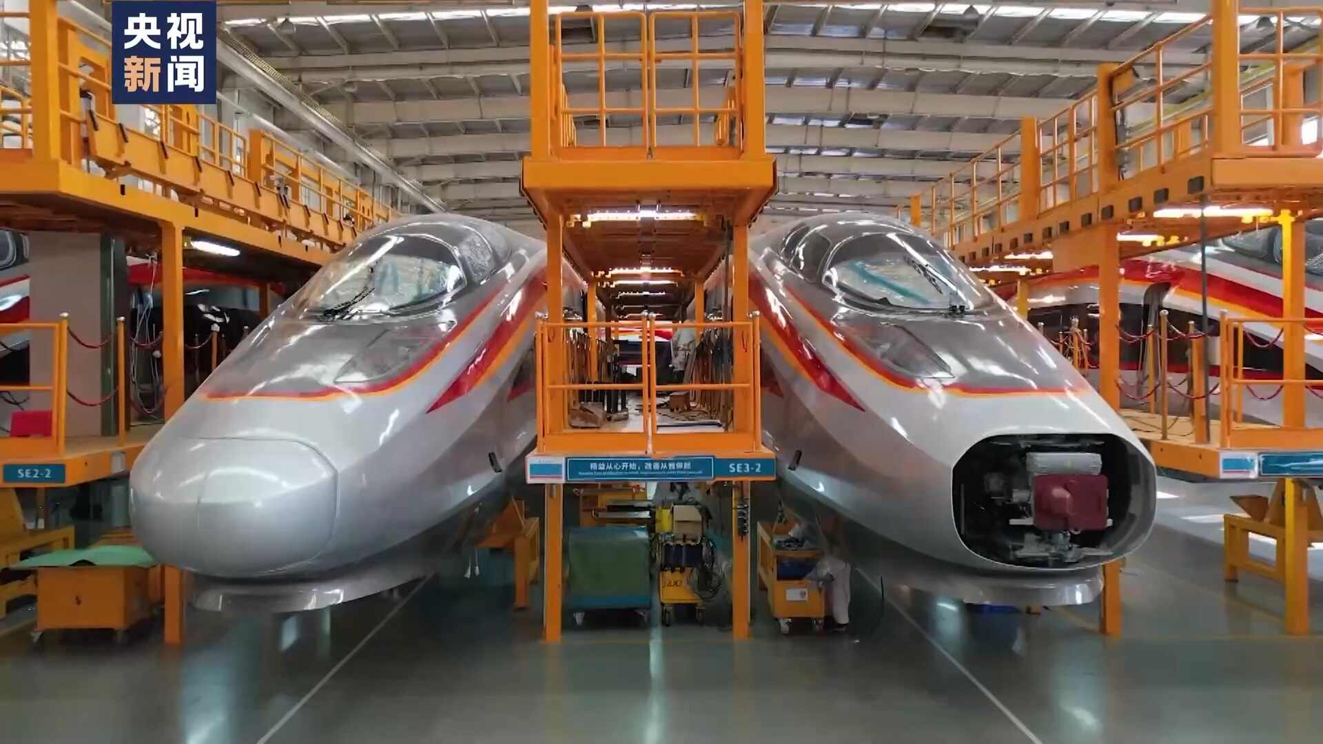 CR450科技创新工程主要包括CR450动车组和时速400公里高铁线路、桥梁、隧道等基础设施技术创新。目前,CR450动车组样车正在加紧研制,样车何时下线?列车提速需要哪些新技术?未来怎样带动相关产业发展?一起走进CR450动车组样车研制一线↓↓↓