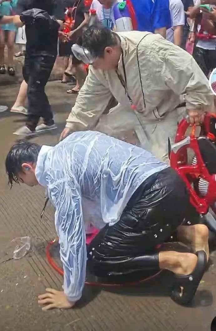 当然,也有“蹭水”顺便洗头的,路人还会热心地帮忙喷水。网友看了都只能说“服”!