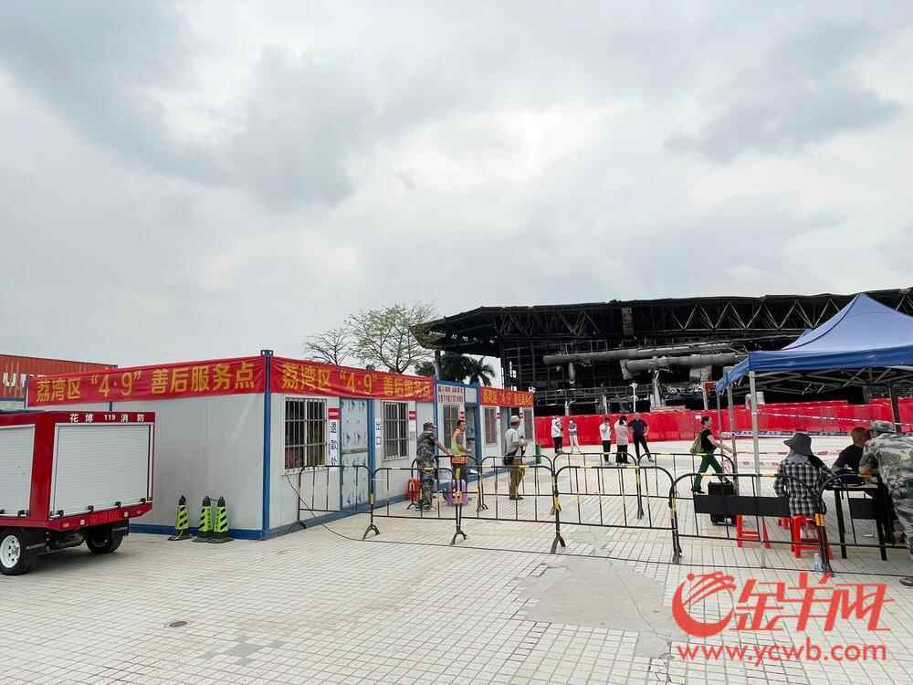 在工艺品馆外部区域,记者走访看到,现场设置了“荔湾区‘4·9’善后服务点”。服务点设置了法律保障组、百艺城接待处、货物搬运登记点、信访接待组等。有工艺品馆受损商户在现场排队等待,寻求解决方案。