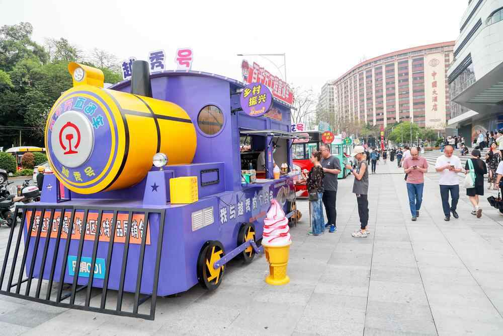 本次“兰缘盛荟·花开越秀”文旅周系列活动期间,流花街将6台直通车开到了越秀国际会议中心前广场,带着越秀区对口支援协助地区的鲜美食材来到广州市民身边,有贵州的腊肉、牛肉干、菌汤菇、刺梨干、土蜂蜜、手工糖、药食同源的天麻、黄精、党参等,福建龙岩的花生、红薯干、芙蓉李干等,广东湛江的红薯、红薯粉丝、海鸭蛋、非遗鸡仔饼、非遗古法红糖、水果、海产品等,还有广州本地在贵州帮扶的明星企业皇上皇。