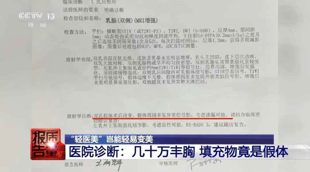 兰兰回忆:“做乳腺B超的医生说,你为什么会显示有假体呢?我说我做过隆胸,但是是自己的,他说这个绝对不是我自己的,建议去大医院看一下。这句话吓到我了。”