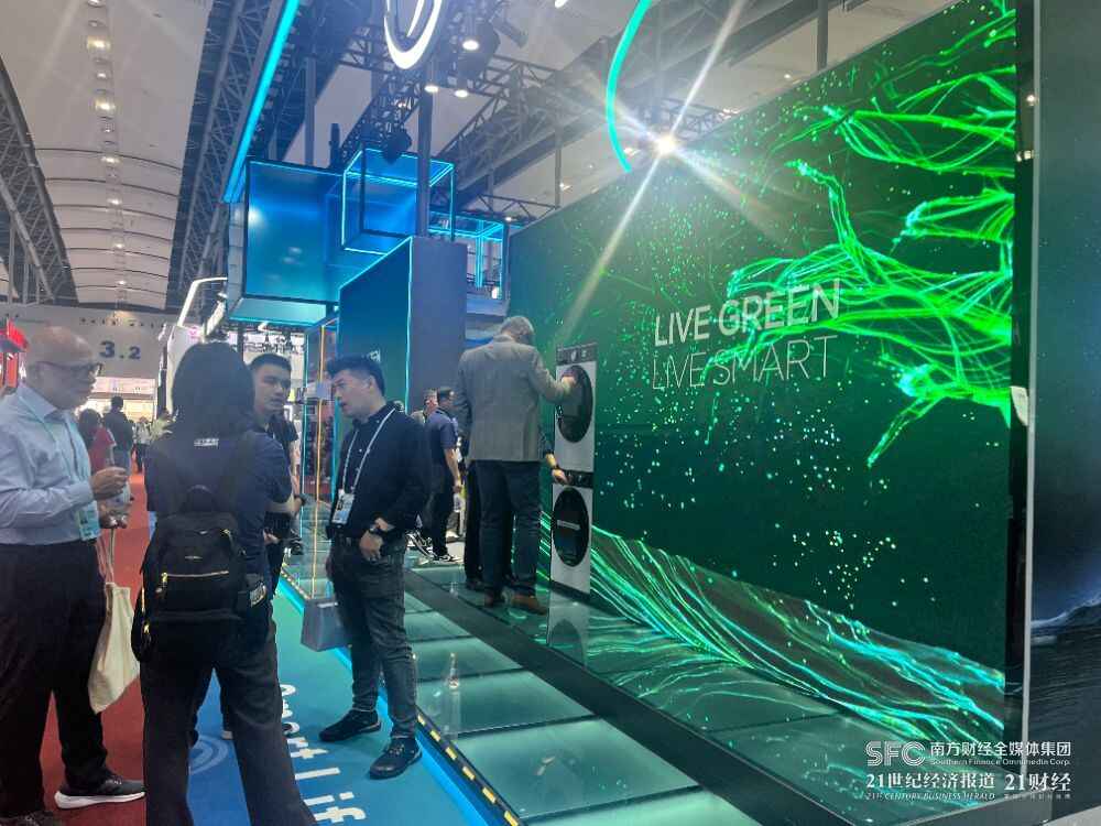 21世纪经济报道记者在现场看到,美的展区里出现了一批尺寸巨大的电子屏,而冰箱、洗衣机等家电产品完美嵌在其中,普通的家电产品俨然变成了一幅流光溢彩的电子画作,不仅美观,从实用性来说,也实现了“隐形家电”。据介绍,这是美的为广交会带来的纯平全嵌产品。