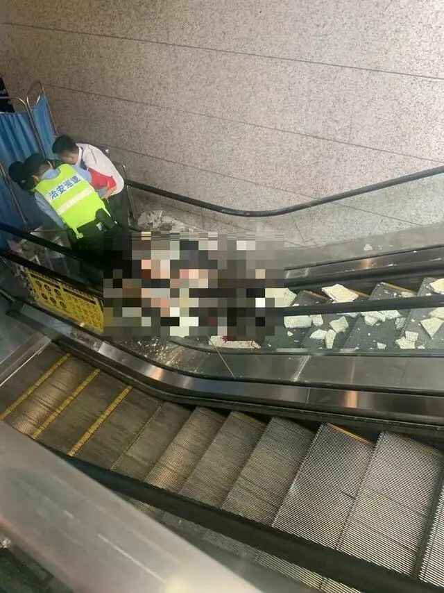 据张女士的亲属朱先生介绍,张女士在南坪附近开了一家店,事发时,她在去店里上班的路上,结果在乘坐轻轨3号线南坪站2号出入口的扶梯时,不幸被多块掉落的墙体瓷砖砸中,瘫倒在扶梯上,血流不止。