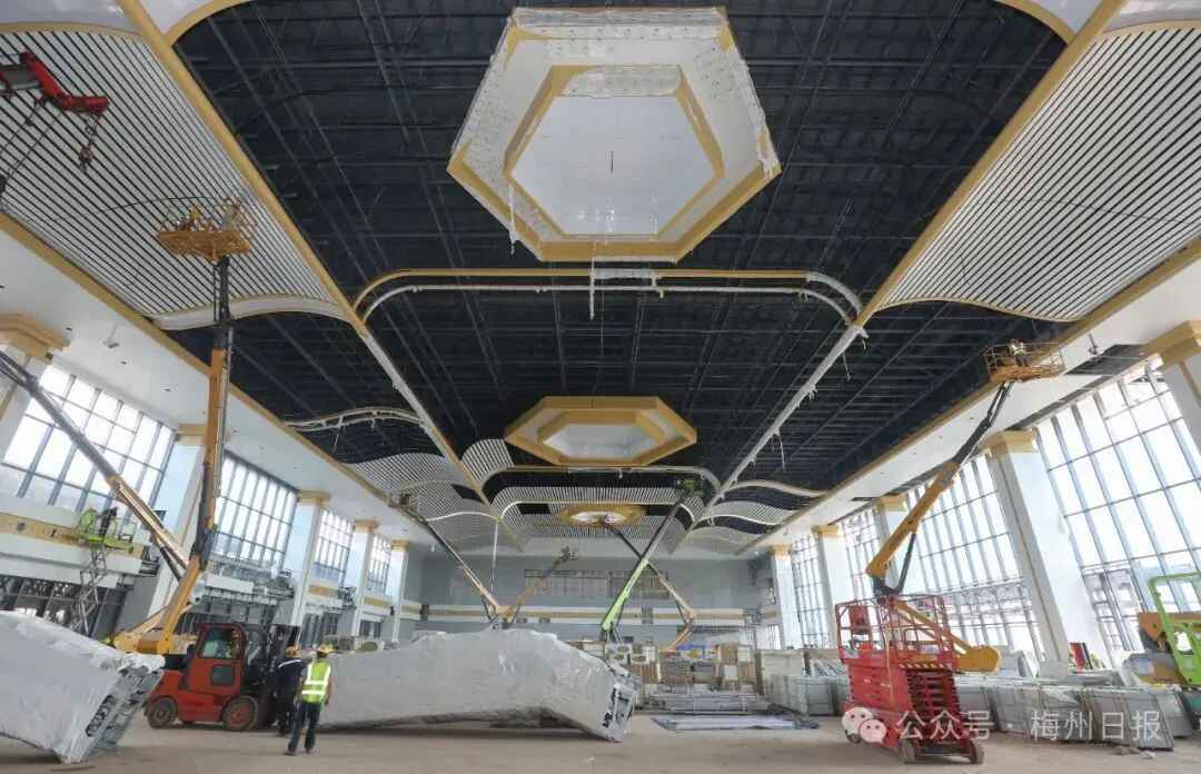 目前,兴宁南站主体结构、钢结构已全部完工,全面进入装饰装修和机电安装阶段;站台铺装已完成98%,预计6月底完成主体工程。