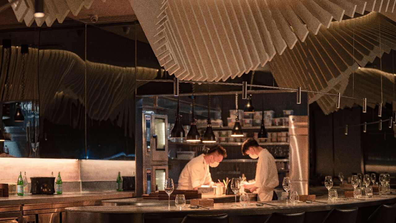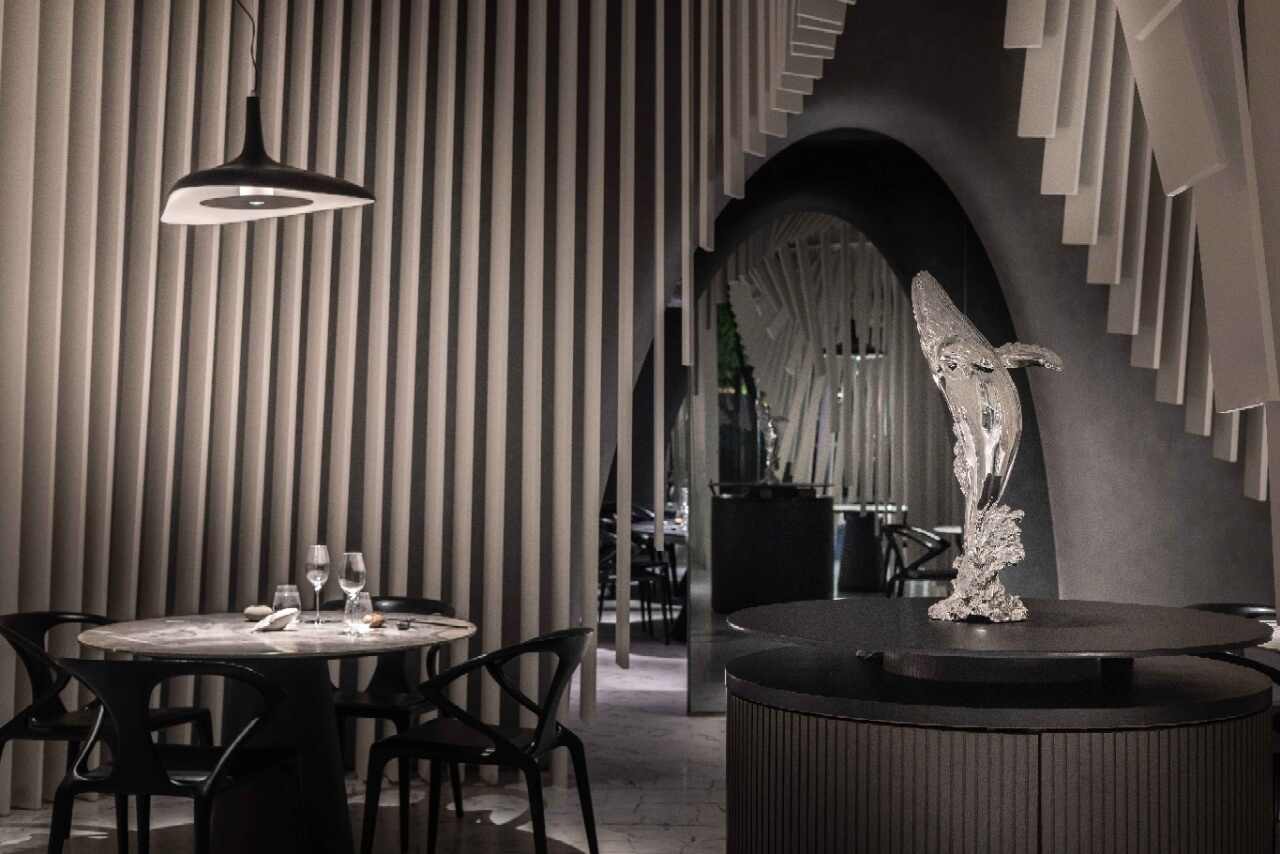 这是一家专注潮汕菜与现代粤菜的餐厅,坐落于广粤天地的专属一隅,每天17:30开门迎客,仅接待12桌客人,不再翻台。步入潮跃,宛如置身“海底世界”,在空间的设计上采用起伏的线条,像海浪般不断涌动,也寓意着食材取自于海洋。