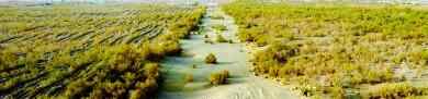 在新疆维吾尔自治区沙雅县盖孜库木乡,上万亩梭梭林嫁接肉苁蓉,群众治沙又致富。柳玉柱摄/光明图片