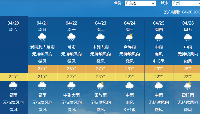 从城市预报来看,广州明后天仍预报有暴雨、甚至大暴雨,算上之前的,等于接连三四天都有暴雨袭击。