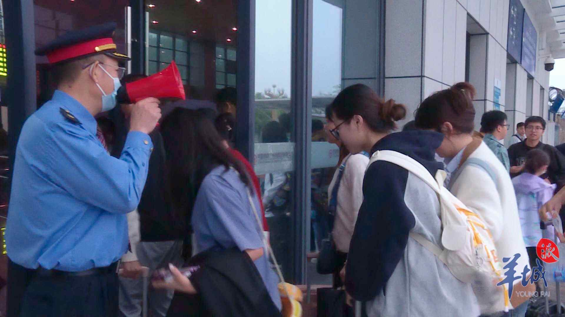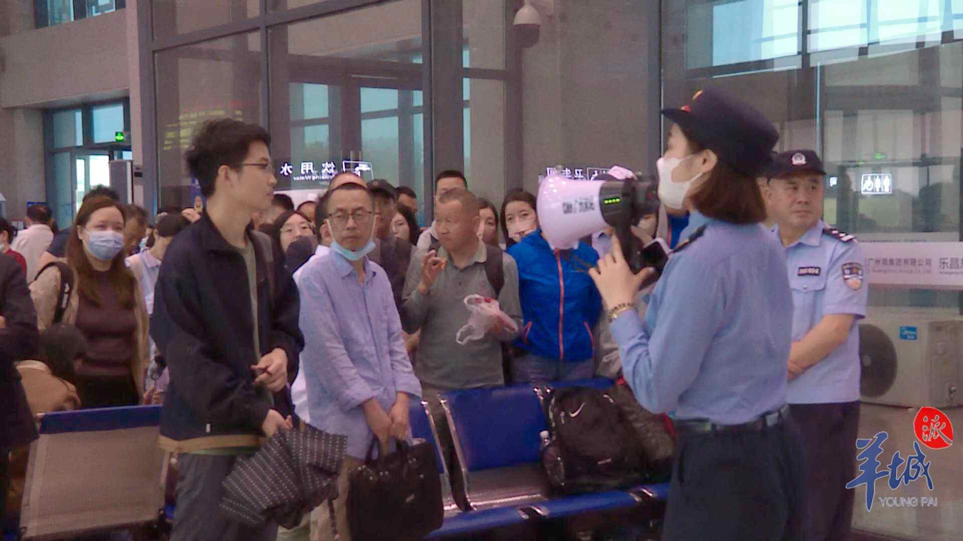 现场,执勤民警及交通运输部门、乐昌火车站、高铁站的工作人员相互配合,及时询问现场转运旅客是否存在困难,帮助旅客转运行李,指引滞留乘客有序、安全转运。