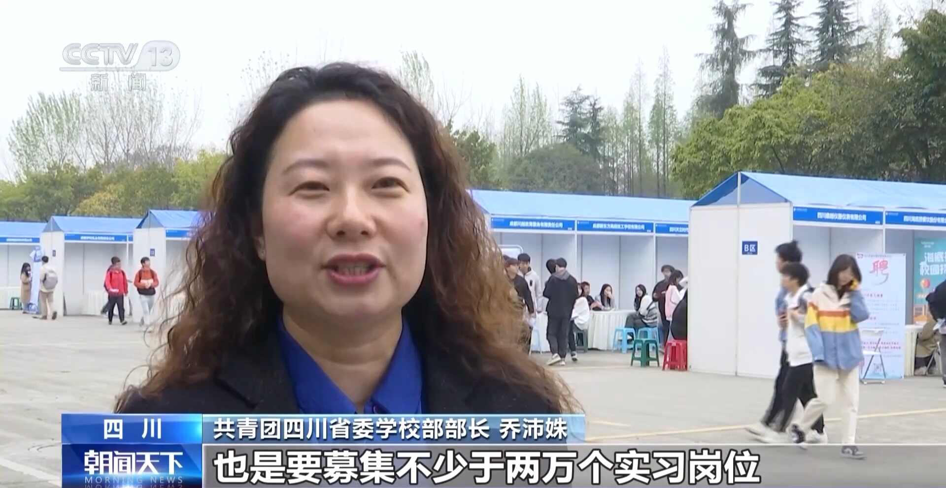共青团四川省委学校部部长 乔沛姝:今年我们的目标也是要募集不少于两万个实习岗位,还会开设一些专项的扶持的基金,帮助大家更好地创业就业。