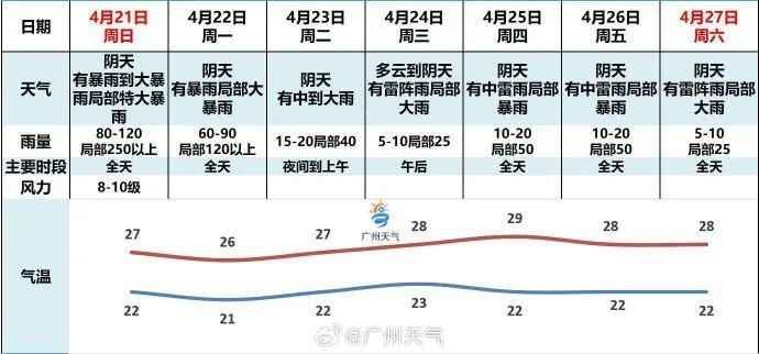 广州方面,根据广州市气象台4月21日上午会商预报结论,在经历21日早晨飑线系统过境后,预计21日余下时间广州降雨仍将持续,但瞬时雨强将比早晨飑线过境时有所减弱;预计22日广州仍将出现暴雨量级降水,局部可达大暴雨量级。